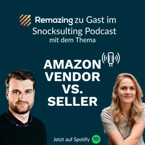 Remazing-Partner Filip Egert war im SNOCKSULTING-Podcast zu Gast und hat dort mit Gastgeberin Romy Riffel über die beiden Verkäufermodelle auf Amazon gesprochen: Vendor oder Seller – oder am besten beides? Der Podcast ist u.a. auf Spotify, Google Podcasts und Podigee verfügbar.