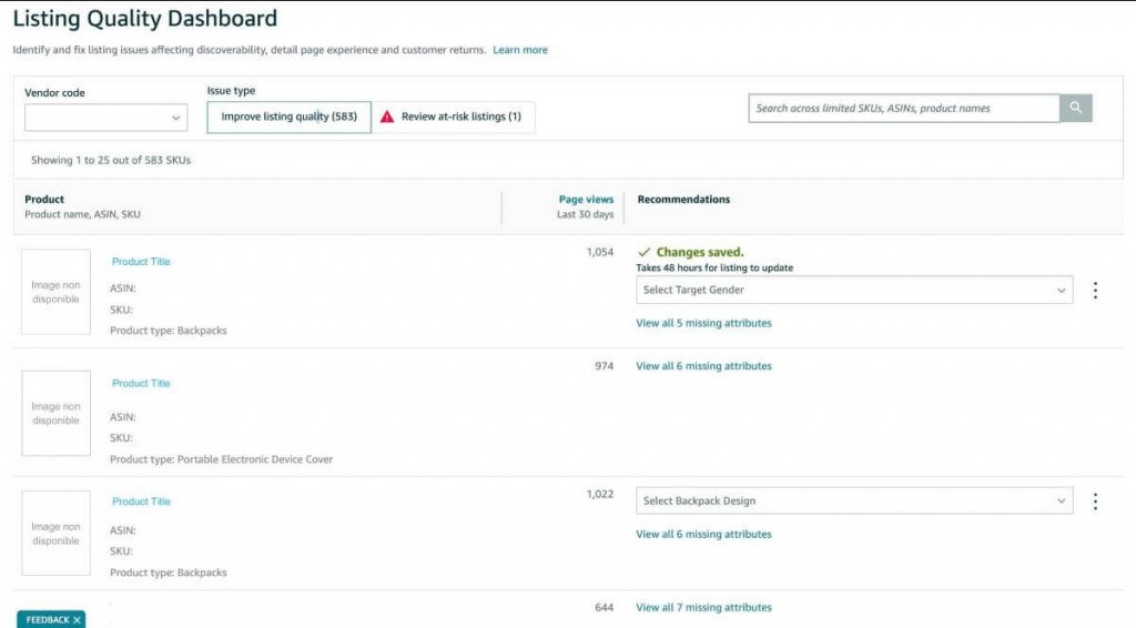 There is also a new tab for vendors and sellers in Vendor and Seller Central: Listing Quality Dashboard – a tool to highlight important product information for customers. The recommendations are updated daily in the dashboard. For example, there is a new Product Overview function that can be used to highlight important product features above the bullet points on the product detail page.