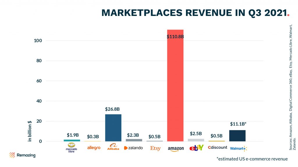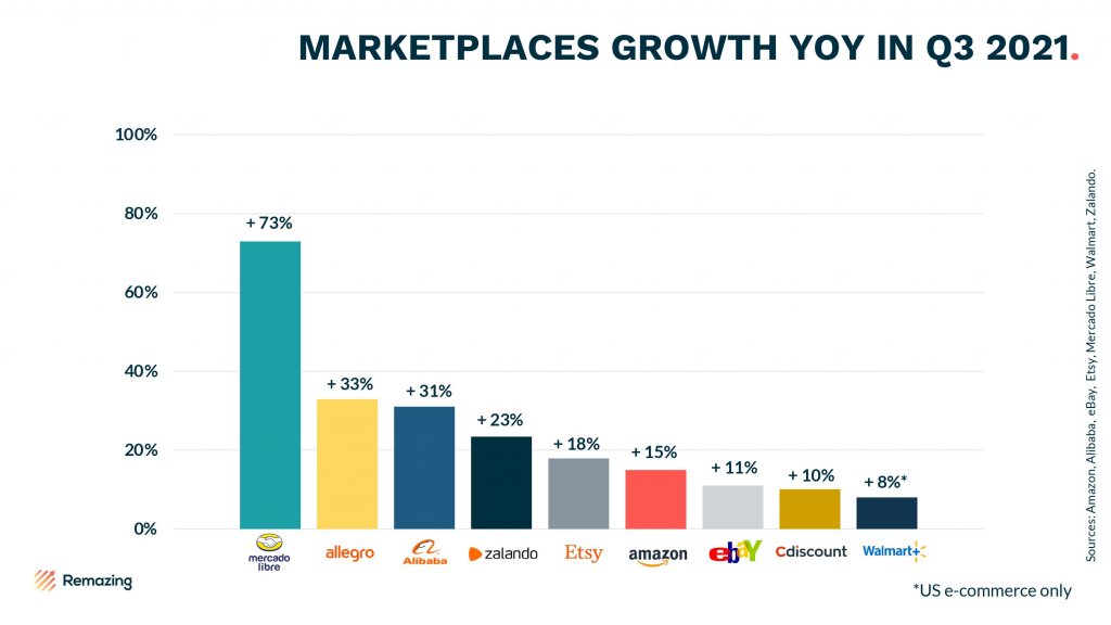 - In total, all online marketplaces’ growth has slowed down in Q3 2021 due to a resurgence of offline shopping and global supply chain issues this year.